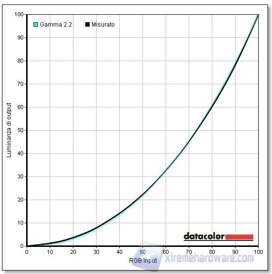 Con i valori di riferimento impostati come al solito, luminosità di 120 cd/mq, gamma di 2,2 e temperatura di 6500K, abbiamo ottenuto il seguente response abbassando la luminosità al valore di 28 e scegliendo i setting 2,2 nel gamma e 6500K nella temperatura. È possibile installare il profilo colore scaricando il file dal seguente link.