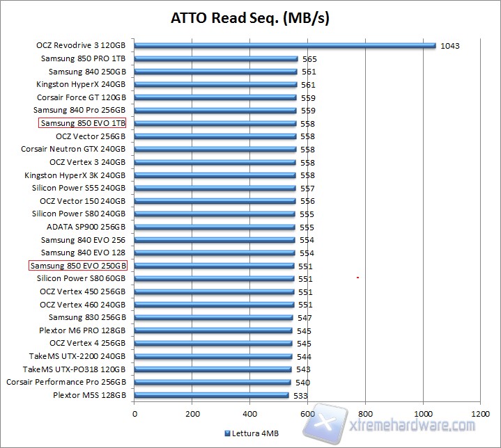 Atto è un benchmark gratuito che esegue dei semplici test in lettura e in scrittura in modalità sequenziale adoperando una Queue Depth (file in coda) di 4.
