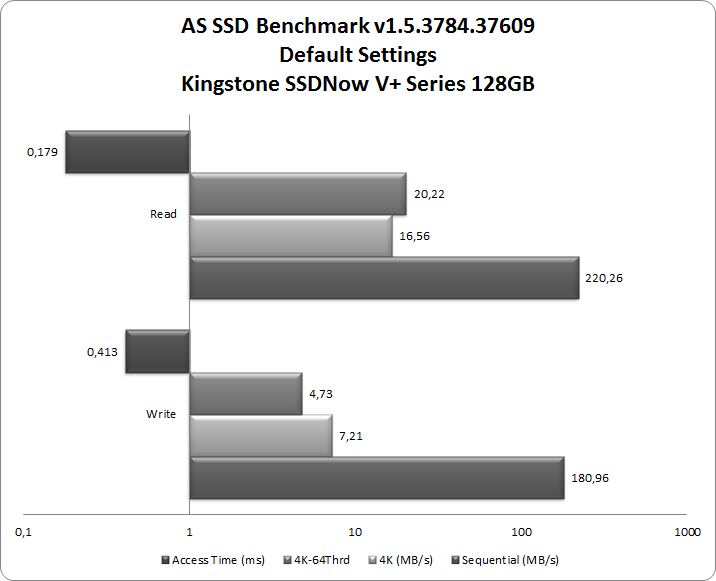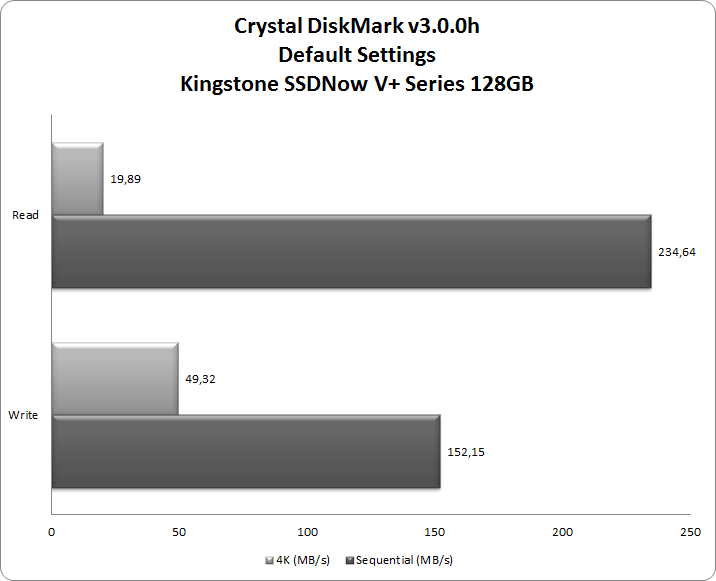 Come è possibile notare dai vari benchmark effettuati, le velocità di lettura e scrittura sequenziale rispecchiamo quelle dichiarate dalla casa, rispettivamente di circa 230MB/s e 180MB/s. Sono prestazioni davvero eccellenti che però sono garantite solo per file di grosse dimensioni. Infatti in caso di accessi random a varie parti del disco e a file di piccole dimensioni, le prestazioni calano drasticamente. Sebbene il calo con file di piccole dimensioni è normale per qualsiasi hard disk le prestazioni sono leggermente sotto la media degli SSD su cui si piazza il V+. Come accennato in precedenza Kingston ha colmato le lacune di questo drive con la serie V+ 100 che utilizza un controller Toshiba migliorato per colmare queste carenze.